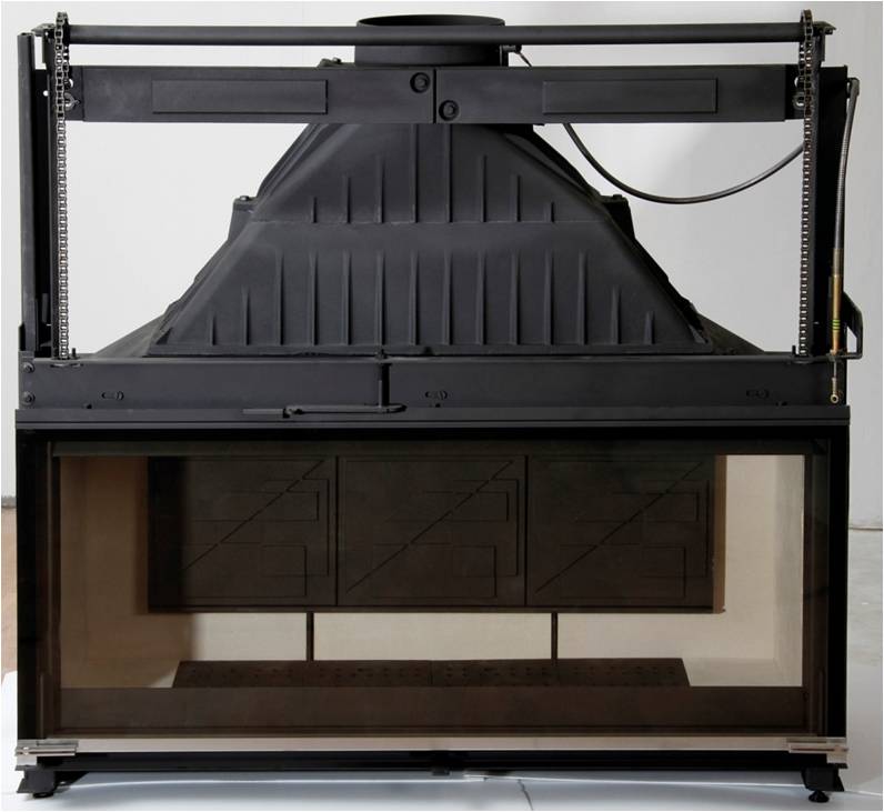 Apresenta controle da entrada do ar de combustão e da saída de fumaça.