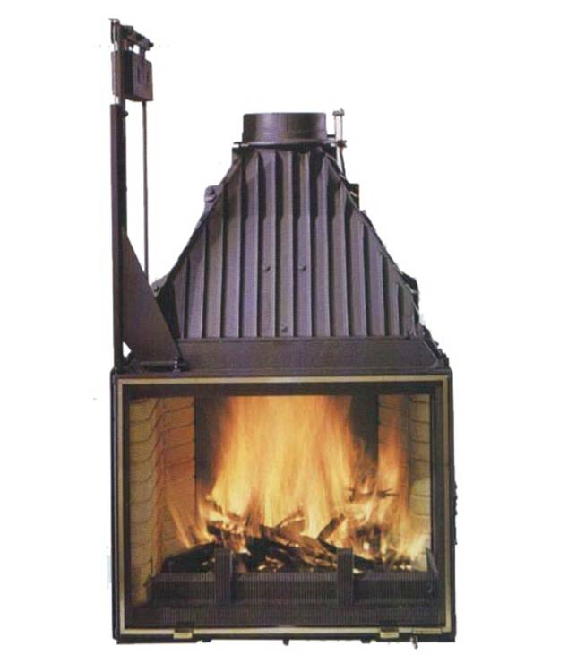 Apresenta controle da entrada do ar de combustão e da saída de fumaça.
